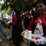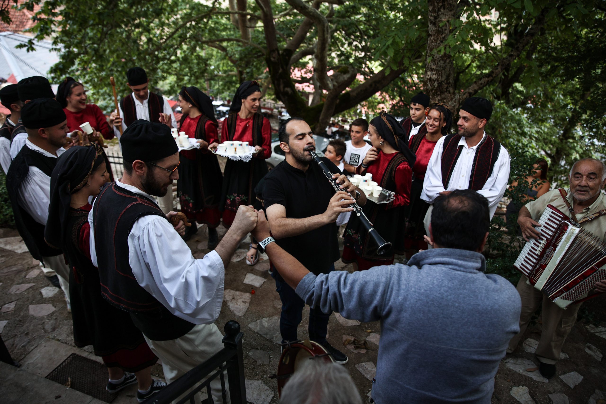 Μόλις τελεστούν τα παραπάνω οι βλάμισσες κερνάνε λουκούμια σε όλη την πλατεία και ξεκινάνε οι χοροί. Πρώτη χορεύει η κουμπάρα, έπειτα ο πεθερός, η πεθερά, ο γαμπρός, η νύφη και ακολουθούν οι υπόλοιποι συγγενείς.