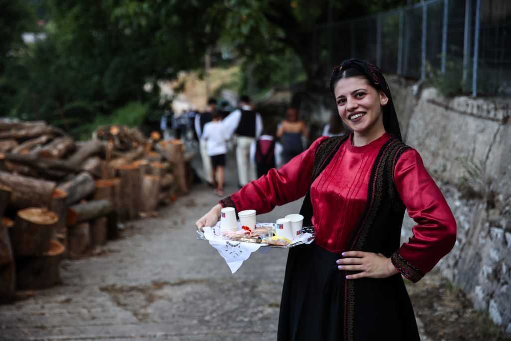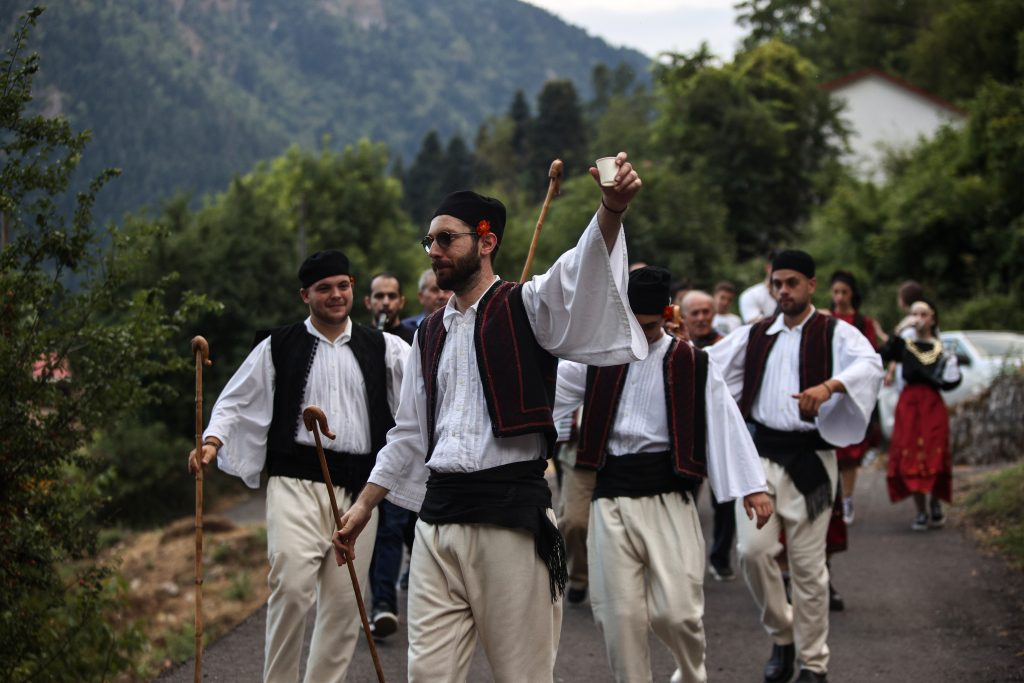 Την παραμονή 25 Ιουλίου η νεολαία του χωριού ντυμένη με παραδοσιακές στολές και τη συνοδεία μουσικών καλεί τους κατοίκους από σπίτι σε σπίτι στο γάμο. Την επόμενη μέρα, ανήμερα της Αγίας Παρασκευής ξεκινάει η αναβίωση του βλάχικου γάμου ακριβώς μετά την τέλεση του μυστηρίου και συγκεκριμένα τη στιγμή όπου η νύφη – χαρακτηριστικό είναι το γεγονός ότι ένας άντρας είναι ντυμένος νύφη – και ο γαμπρός πηγαίνουν στο σπίτι του γαμπρού, στο οποίο τους περιμένουν τα πεθερικά.