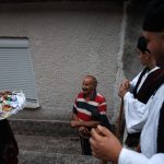 Αφού χορέψουν όλοι, η νύφη κάθεται σε μια καρέκλα και φέρνουν στα πόδια της ένα μωρό, αγόρι επειδή εκείνη την εποχή θεωρούσαν ότι τα αγόρια πρόσφεραν στο σπίτι ενώ τα κορίτσια ξόδευαν. Ο κόσμος όπου στέκεται πίσω από τη νύφη σε ημικύκλιο φωνάζει «με αγόρια, με αγόρια» ώστε η νύφη να γεννήσει αγόρια.