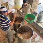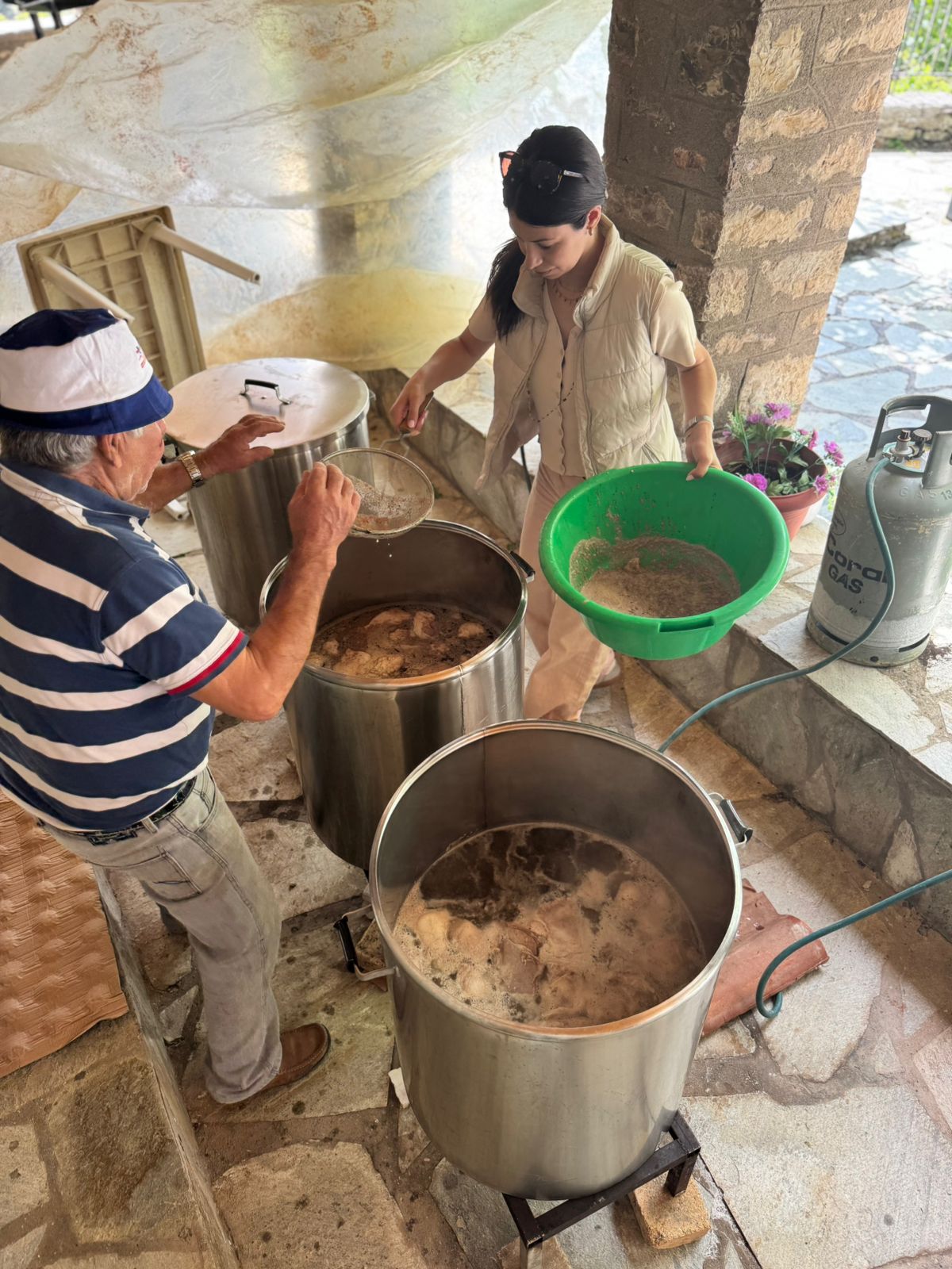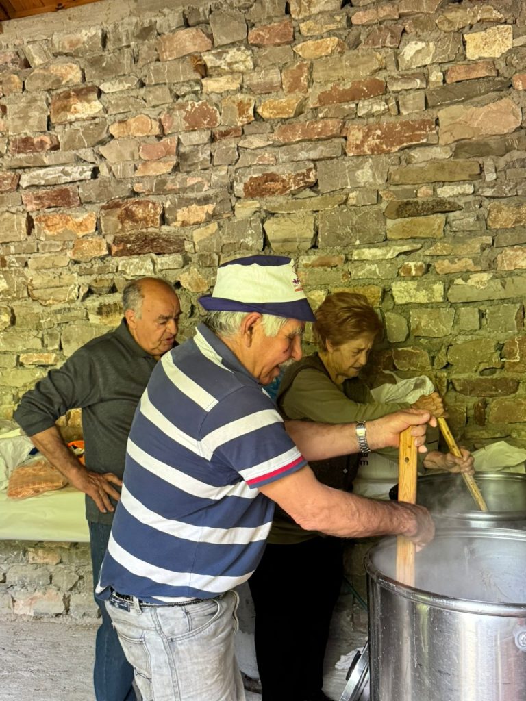 Τα πρώτα χρόνια, ολόκληρη η διαδικασία παρασκευής του γεύματος γινόταν στην περιοχή της Ασφάκας. Μάλιστα, οι παλιότεροι θυμούνται να διανυκτερεύουν εκεί, γύρω από τα καζάνια και τη φωτιά, τόσο για να επιβλέπουν το μαγείρεμα όσο και για να μην τους κλέψουν το κρέας. Φυσικά, δεν έχαναν την ευκαιρία να το διασκεδάσουν, αφού πολλοί κάτοικοι από το χωριό πήγαιναν να κάνουν συντροφιά σε όσους μαγείρευαν και όπως περιγράφουν «ανάβαμε κι άλλη φωτιά και ψήναμε σουβλάκια, λουκάνικα, έρχονταν φίλοι μας κλαριτζήδες, τραγουδούσαμε, χορεύαμε». Τα τελευταία χρόνια, για λόγους διευκόλυνσης  της διαδικασίας, η παρασκευή του γεύματος διενεργείται στο προαύλιο της εκκλησίας, στην πλατεία του χωριού.